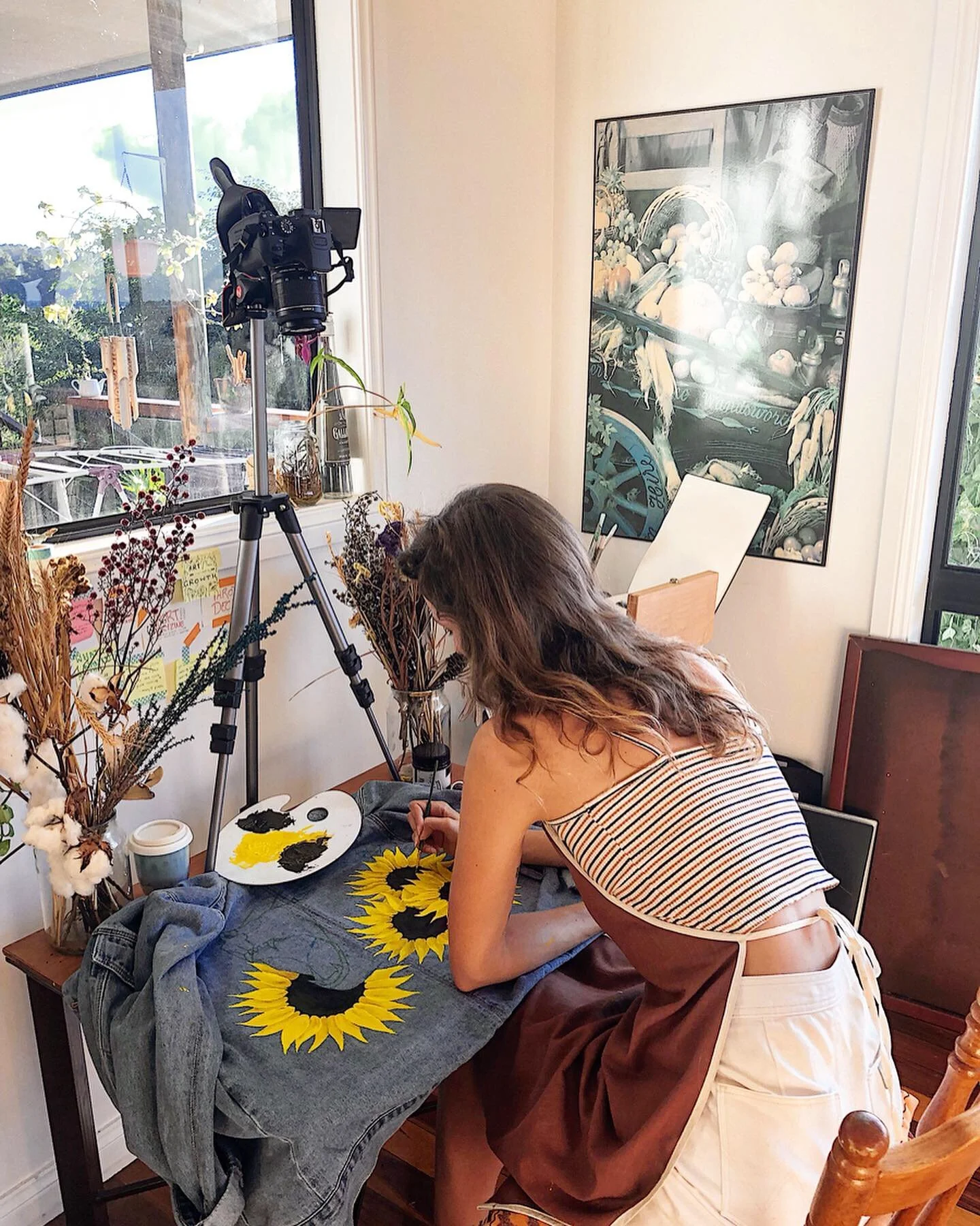 I was living with my best friends — a time that felt expansive and full of ease. That sense of freedom and joy wove itself into my work. I continued exploring watercolour while beginning to expand into new materials — acrylic on canvas, gouache, coloured pencil, and experimenting with wearable pieces.